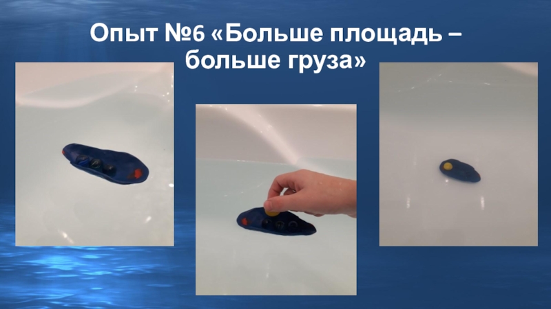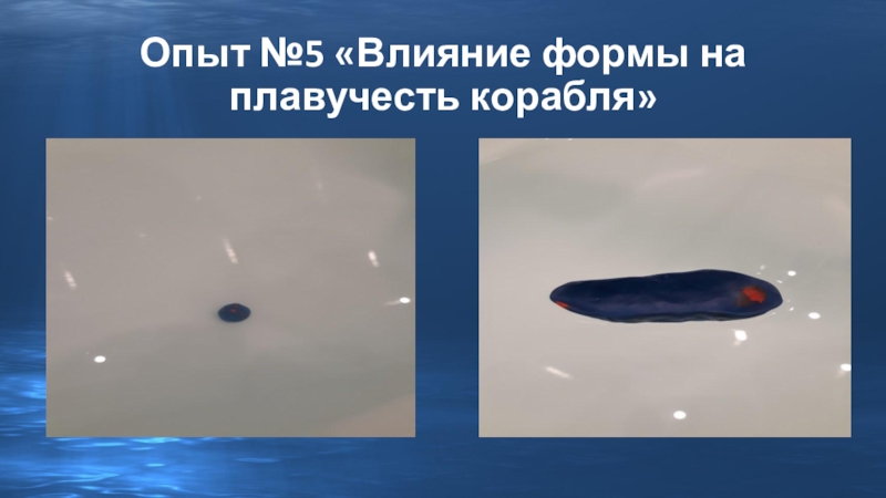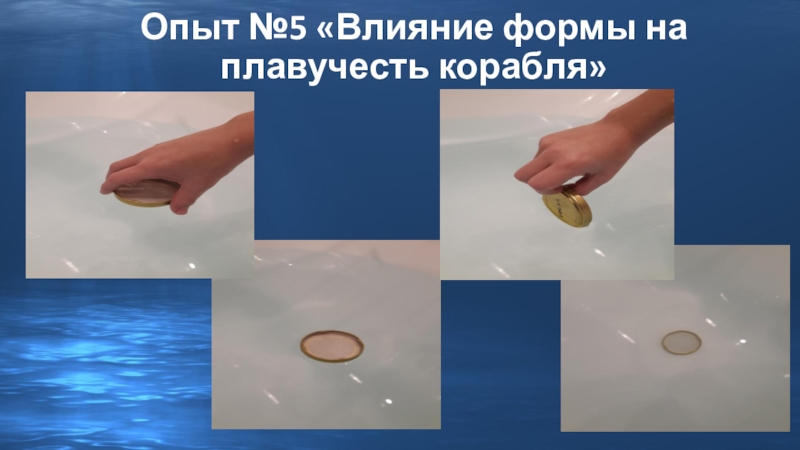 Слайд 14Опыт №5 «Влияние формы на плавучесть корабля»