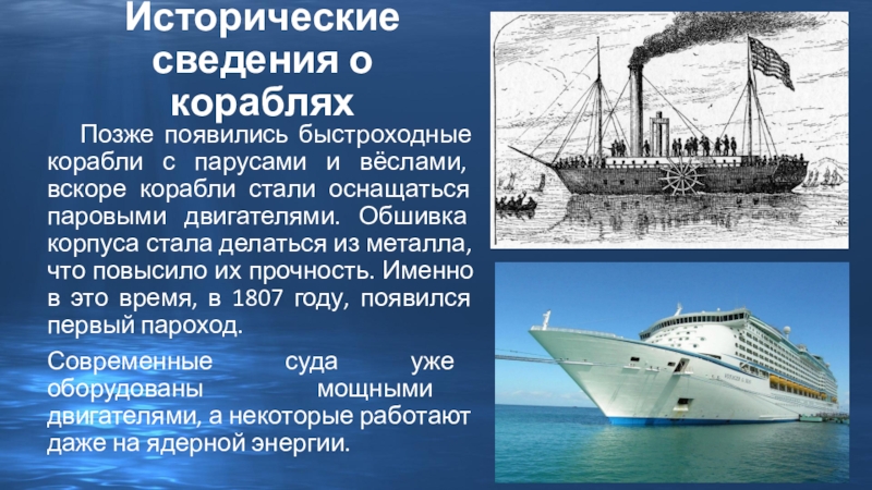 Слайд 7Исторические сведения о кораблях