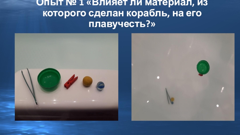 Слайд 9Опыт № 1 «Влияет ли материал, из которого сделан корабль, на