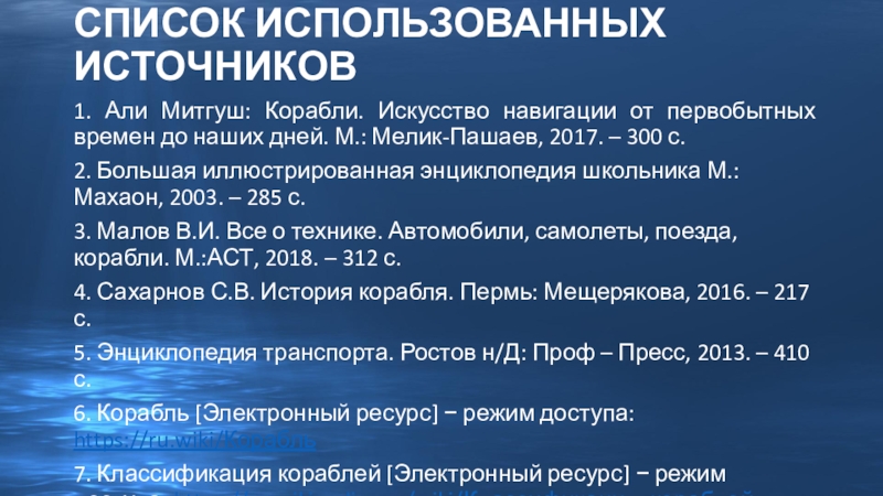 7. Классификация кораблей [Электронный ресурс] − режим доступа: https://ru.wikipedia.org/wiki/Классификация_кораблей