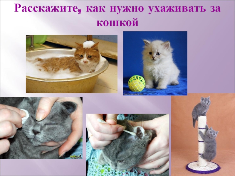 Слайд 10Расскажите, как нужно ухаживать за кошкой