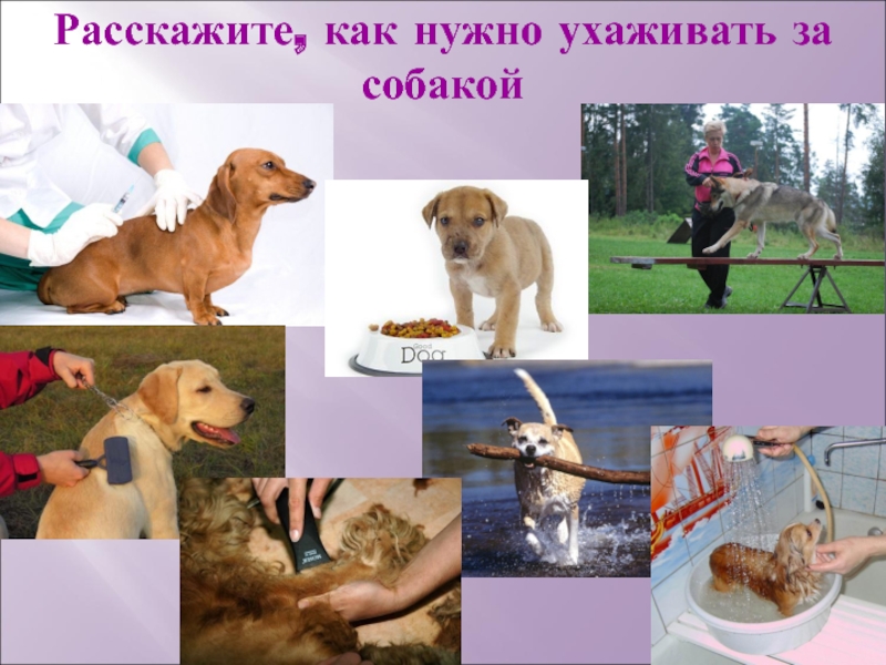 Слайд 19Расскажите, как нужно ухаживать за собакой