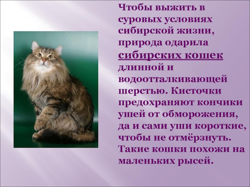 Слайд 5Чтобы выжить в суровых условиях сибирской жизни, природа одарила сибирских кошек