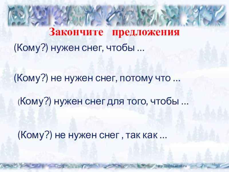 (Кому?) нужен снег для того, чтобы …