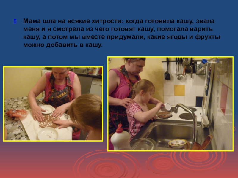 Слайд 4Мама шла на всякие хитрости: когда готовила кашу, звала меня и