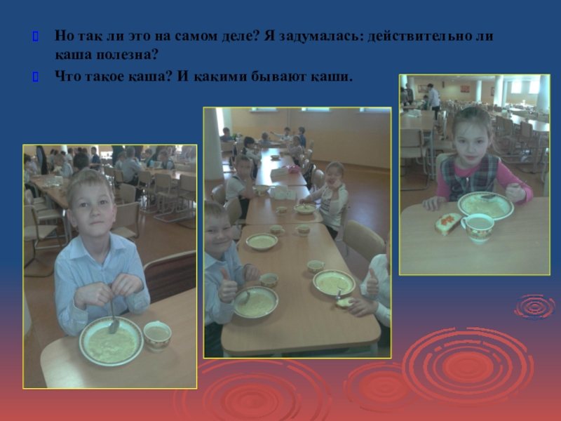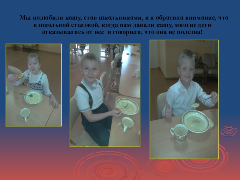 Слайд 5 Мы полюбили кашу, став школьниками, и я обратила внимание, что