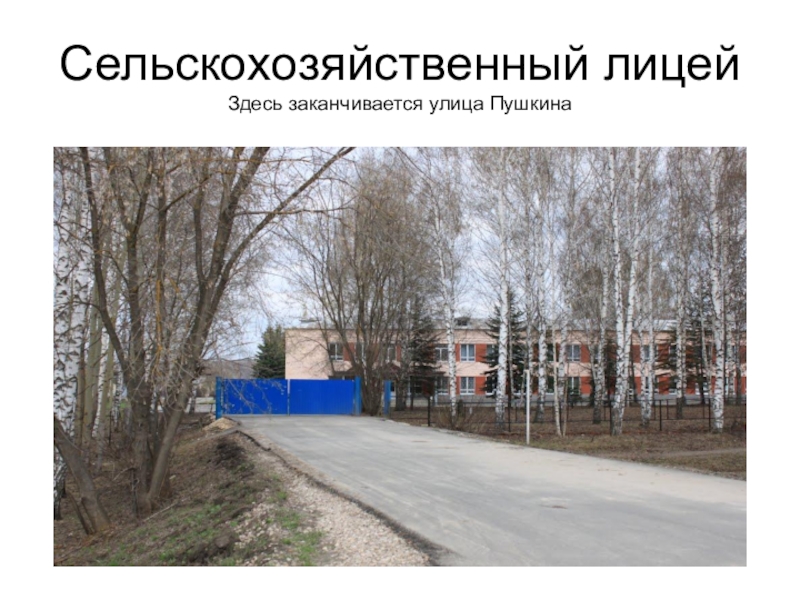 Слайд 20Сельскохозяйственный лицей Здесь заканчивается улица Пушкина