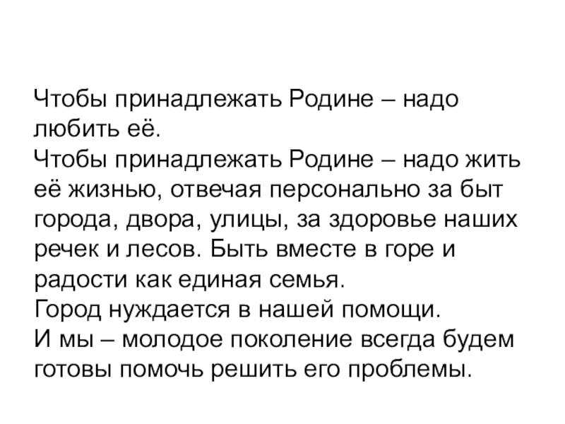 Чтобы принадлежать Родине – надо любить её. Чтобы принадлежать Родине – надо жить её жизнью, отвечая персонально