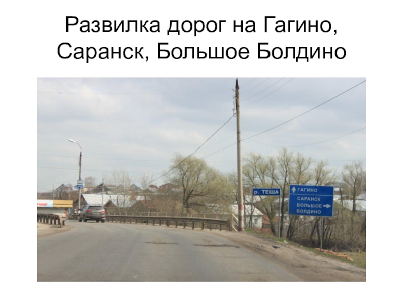 Слайд 8Развилка дорог на Гагино, Саранск, Большое Болдино