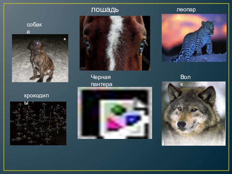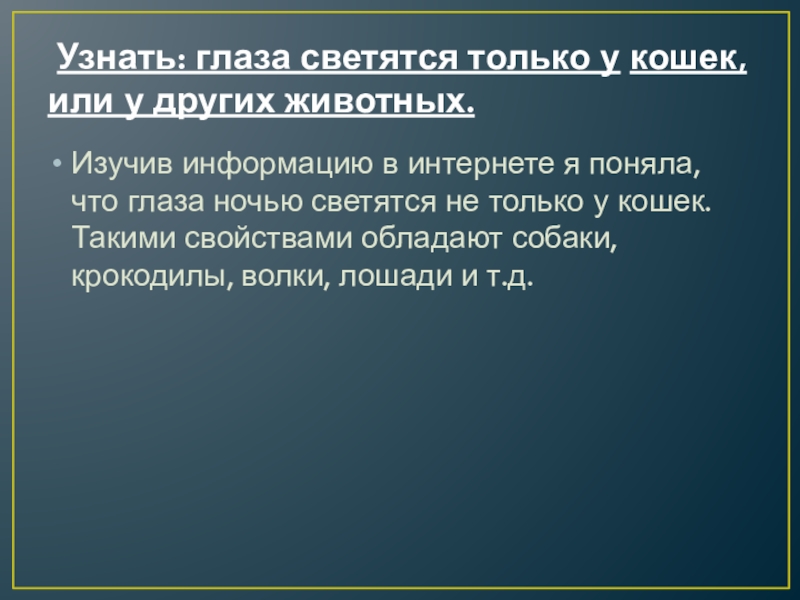 Слайд 10 Узнать: глаза светятся только у кошек, или у других животных.