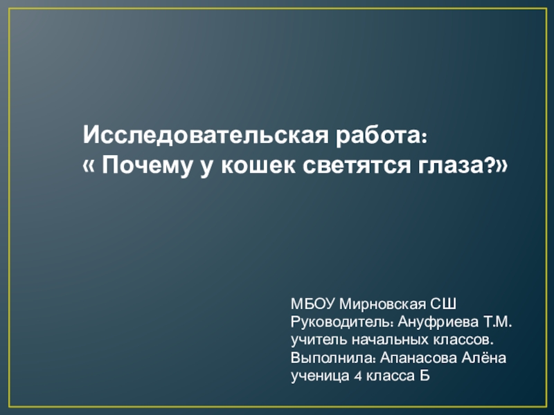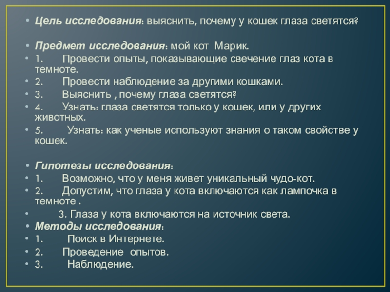 Слайд 3Цель исследования: выяснить, почему у кошек глаза светятся?