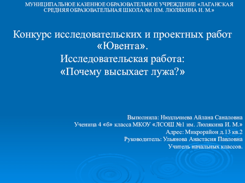 «Почему высыхает лужа?»