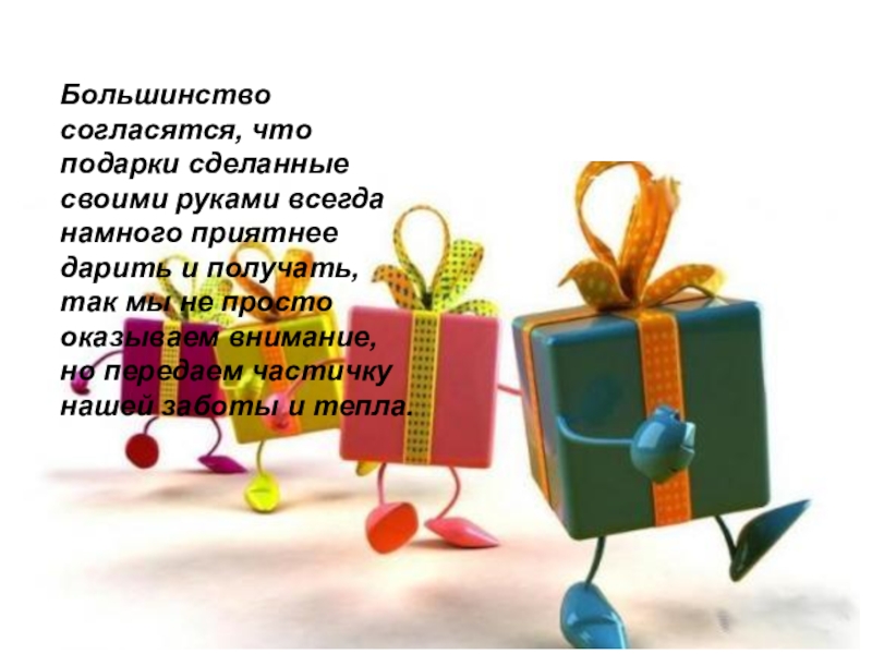 Слайд 2Большинство согласятся, что подарки сделанные своими руками всегда намного приятнее дарить