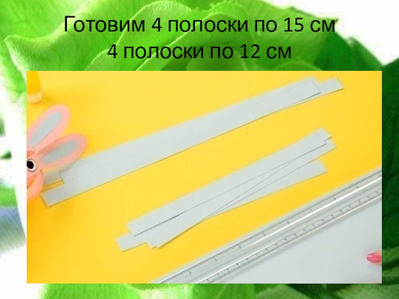 Слайд 2Готовим 4 полоски по 15 см 4 полоски по 12 см