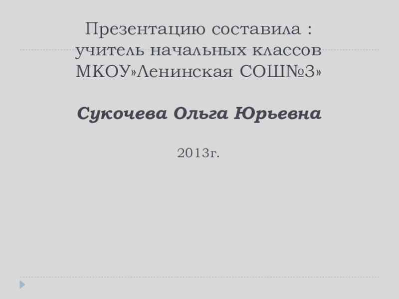 Презентацию составила : учитель начальных классов МКОУ»Ленинская СОШ№3»  Сукочева Ольга Юрьевна  2013г.