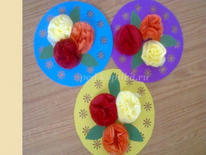 Презентация, доклад поделки к 8 марта Цветы из салфеток