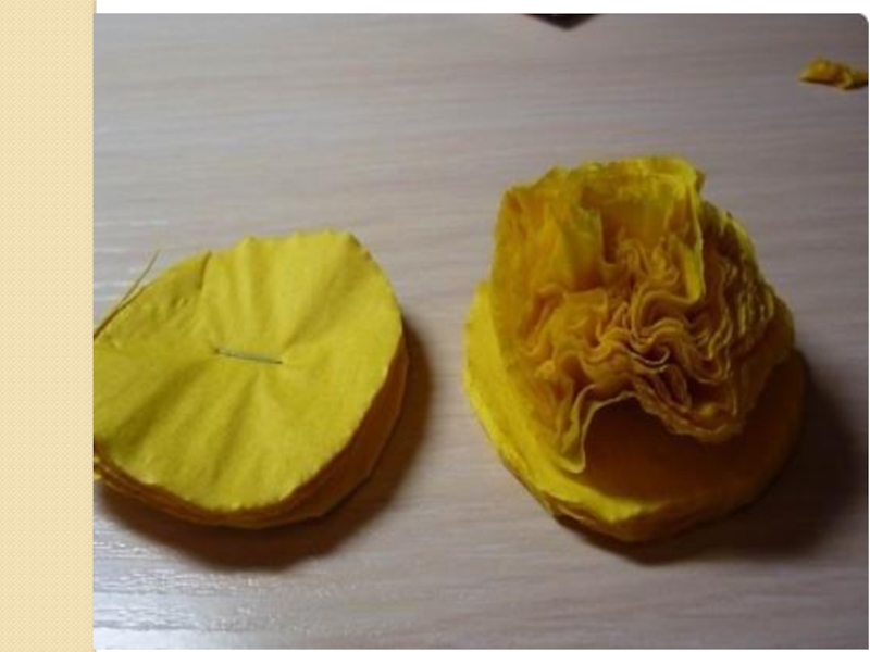 Слайд 5Сминаем каждый слой, чем больше слоев тем пышнее цветок