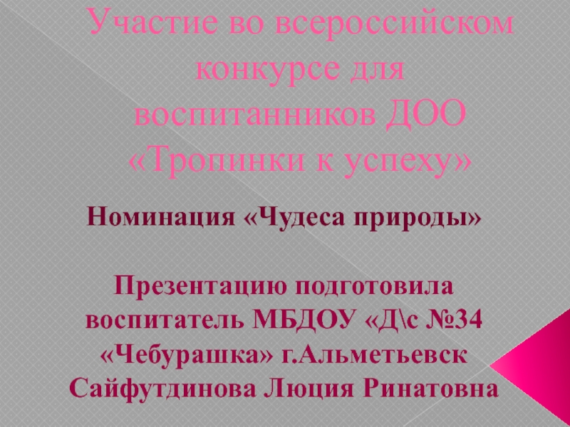 Презентацию подготовила воспитатель МБДОУ «Д\с №34 «Чебурашка» г.Альметьевск Сайфутдинова Люция Ринатовна