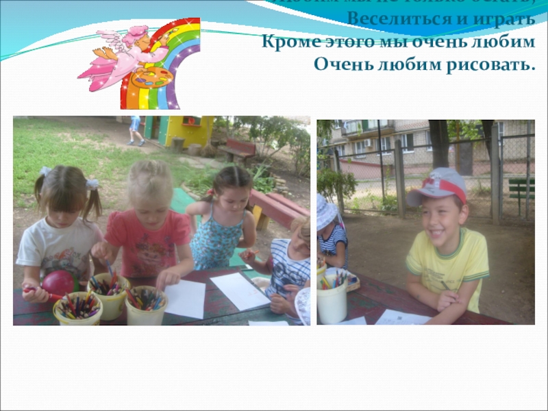Любим мы не только бегать, Веселиться и играть Кроме этого мы очень любим Очень любим рисовать.