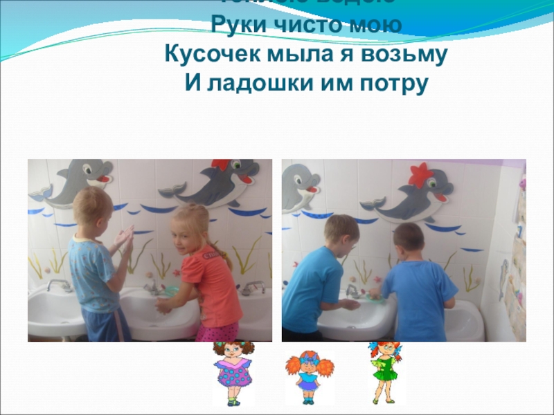 Теплою водою Руки чисто мою Кусочек мыла я возьму И ладошки им потру