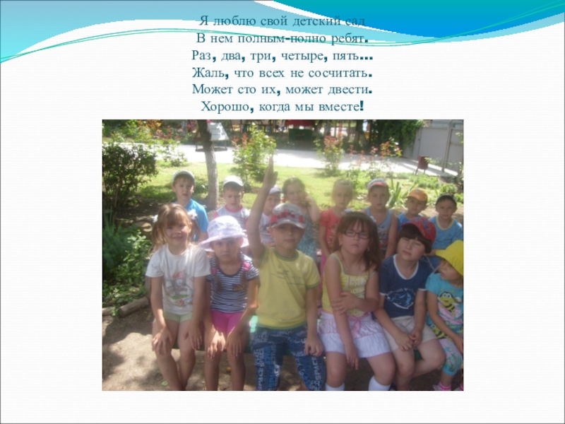 Слайд 9Я люблю свой детский сад В нем полным-полно ребят. Раз, два,