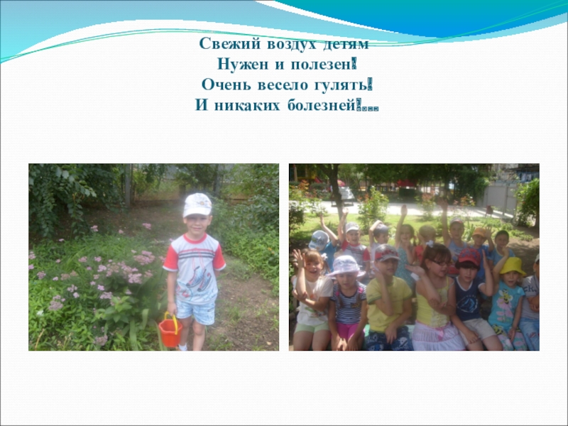 Слайд 6Свежий воздух детям Нужен и полезен! Очень весело гулять! И никаких