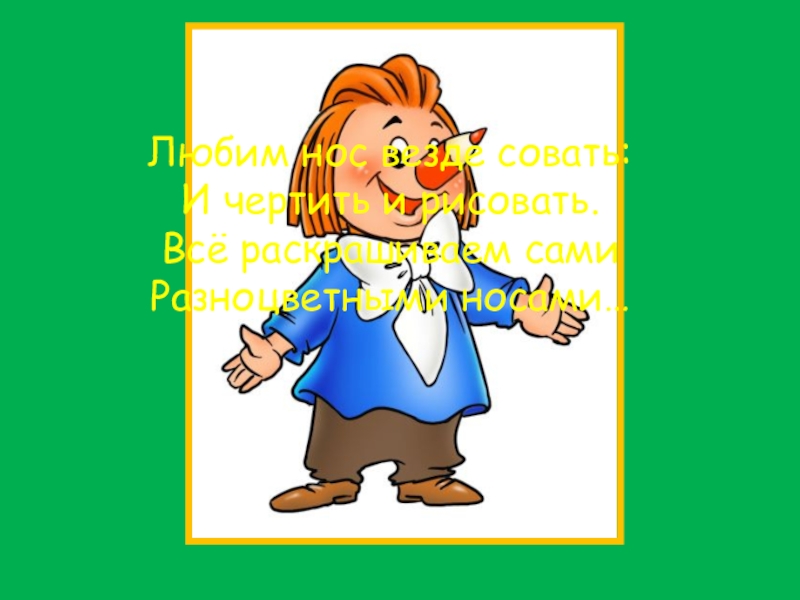 Любим нос везде совать:И чертить и рисовать.Всё раскрашиваем самиРазноцветными носами…