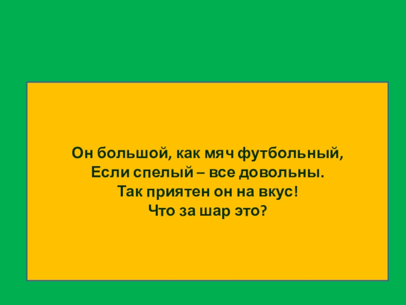 Он большой, как мяч футбольный,Если спелый – все довольны.Так приятен он на вкус!Что за шар это?