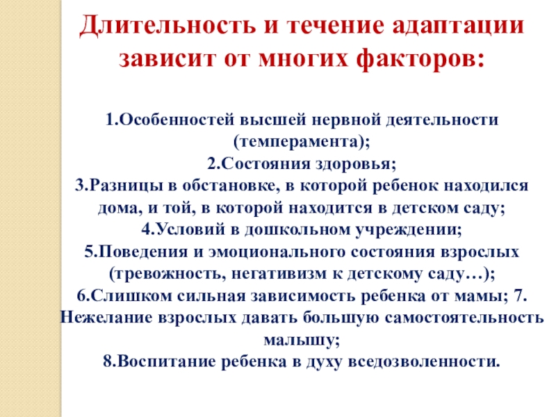 Слайд 5Длительность и течение адаптации зависит от многих факторов: