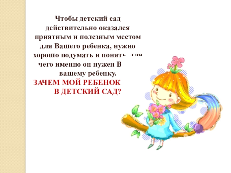 Слайд 2Зачем идти ребенку в детский сад? В детском саду ребенок имеет