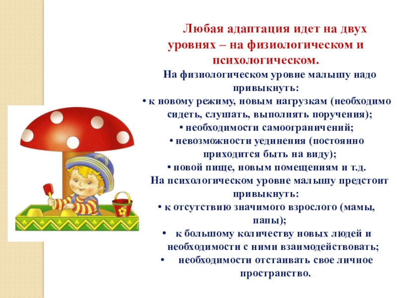 Любая адаптация идет на двух уровнях – на физиологическом и психологическом.