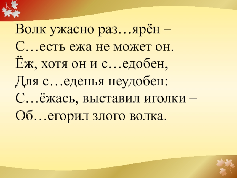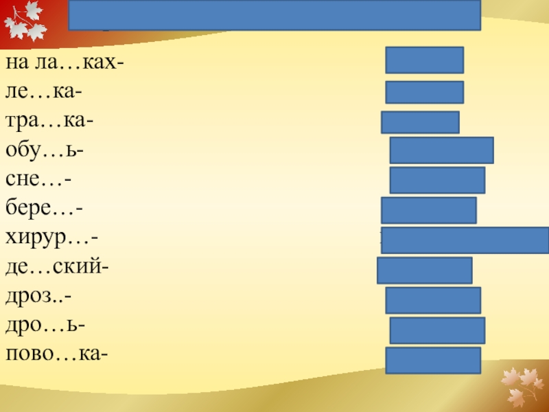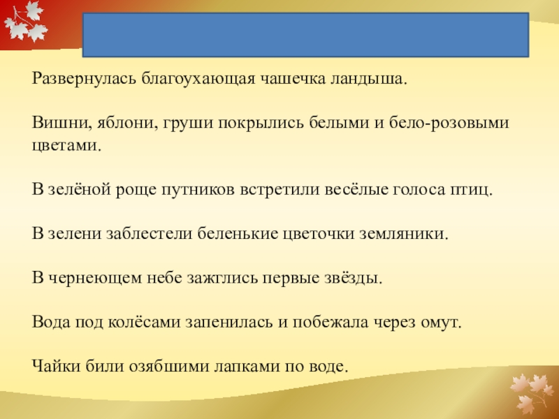 сарафан-2 скл, постель-3скл., поляна-1 скл., земля-1 скл., солнце-2 скл., утро-2 скл., сирень-3 скл., мышь-3 скл.