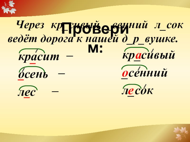 Слайд 5Чтобы проверить безударную гласную в корне слова, надо подобрать однокоренное слово