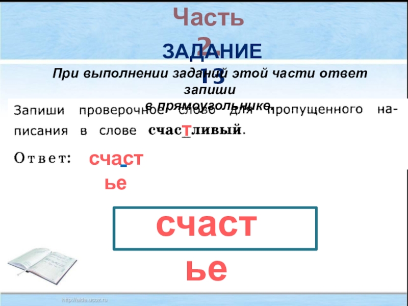 Часть 2.Задание 13При выполнении заданий этой части ответ запиши в прямоугольнике.счастьесчастьет