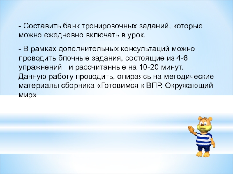 Слайд 19- Составить банк тренировочных заданий, которые можно ежедневно включать в урок.