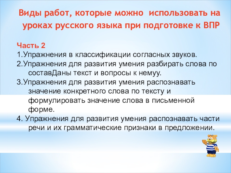 Виды работ, которые можно использовать на уроках русского языка при подготовке к ВПР