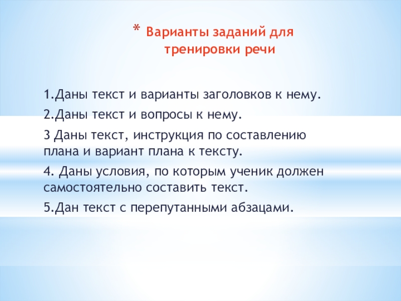 4. Даны условия, по которым ученик должен самостоятельно составить текст.