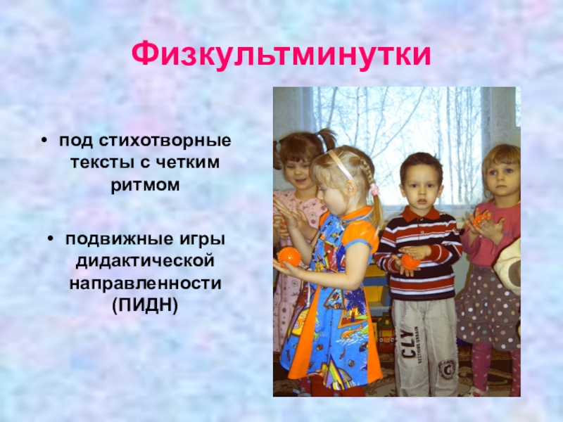 Физкультминуткипод стихотворные тексты с четким ритмомподвижные игры дидактической направленности      (ПИДН)