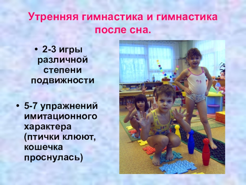 Слайд 5Утренняя гимнастика и гимнастика после сна.