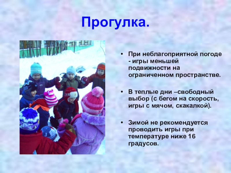 При неблагоприятной погоде - игры меньшей подвижности на ограниченном пространстве.