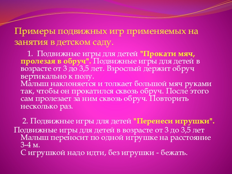 Слайд 16Примеры подвижных игр применяемых на занятия в детском саду.