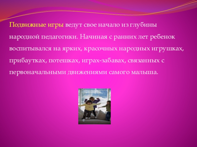Слайд 2Подвижные игры ведут свое начало из глубины народной педагогики. Начиная с