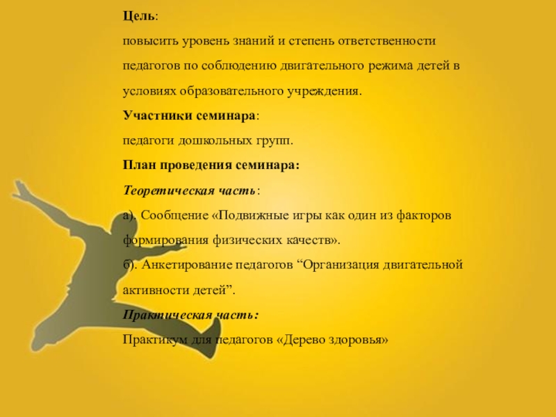 повысить уровень знаний и степень ответственности педагогов по соблюдению двигательного