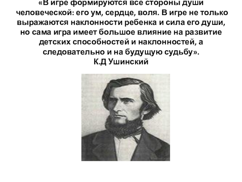 Слайд 2«В игре формируются все стороны души человеческой: его ум, сердце, воля.
