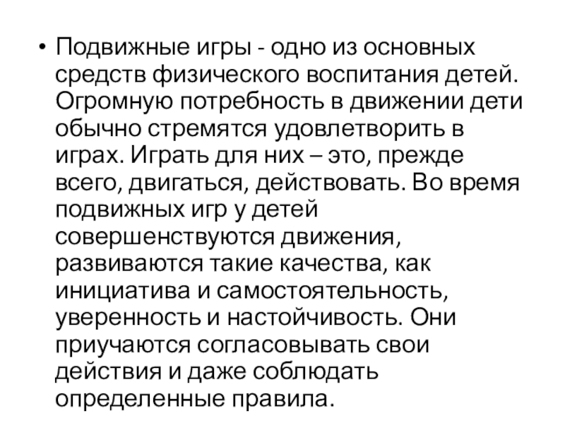 Слайд 8Подвижные игры - одно из основных средств физического воспитания детей. Огромную
