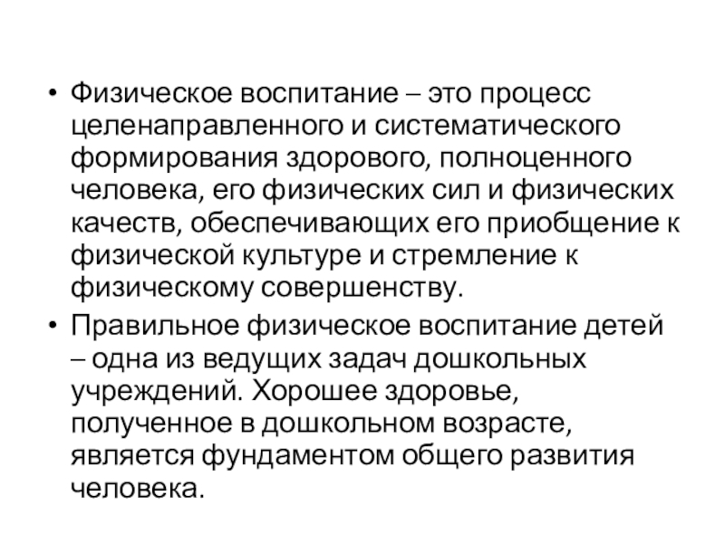 Слайд 6Физическое воспитание – это процесс целенаправленного и систематического формирования здорового, полноценного