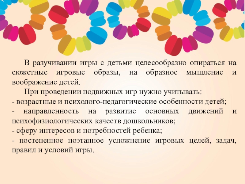 В разучивании игры с детьми целесообразно опираться на сюжетные игровые образы,