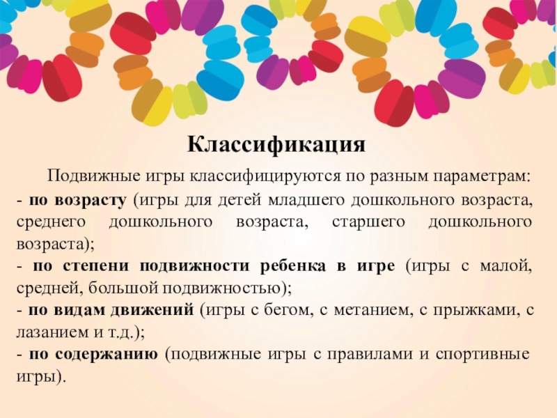 Подвижные игры классифицируются по разным параметрам:
