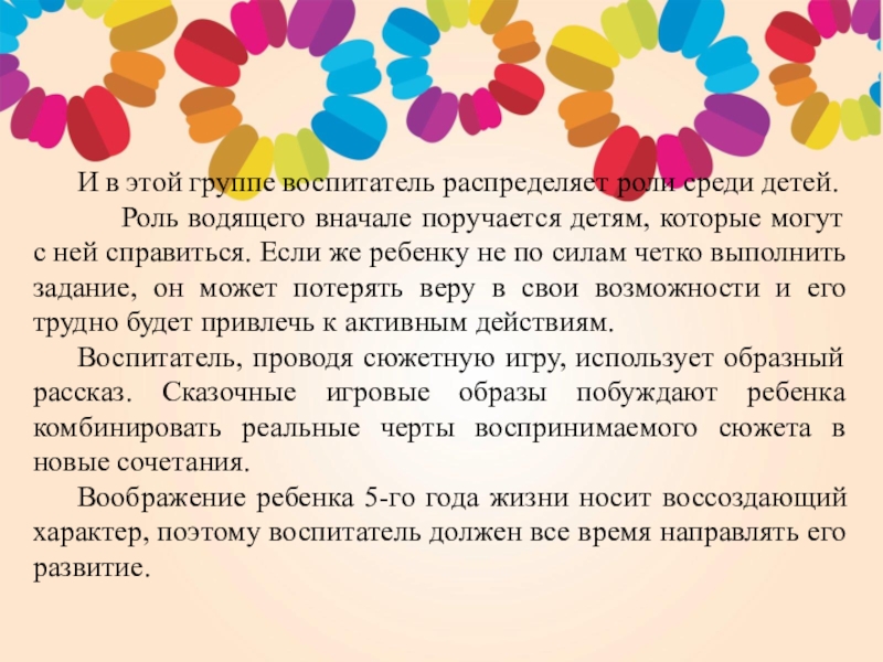 И в этой группе воспитатель распределяет роли среди детей.