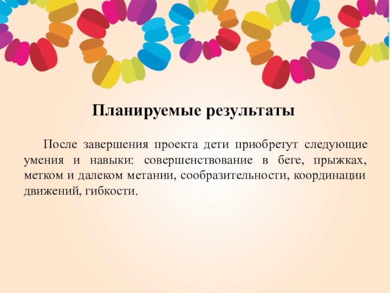После завершения проекта дети приобретут следующие умения и навыки: совершенствование в